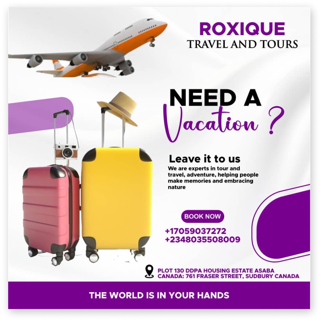 Roxique Travels & Tours (RC: 1367418) is an indigenous online and offline travel agency situated in Asaba, Delta State, Nigeria.